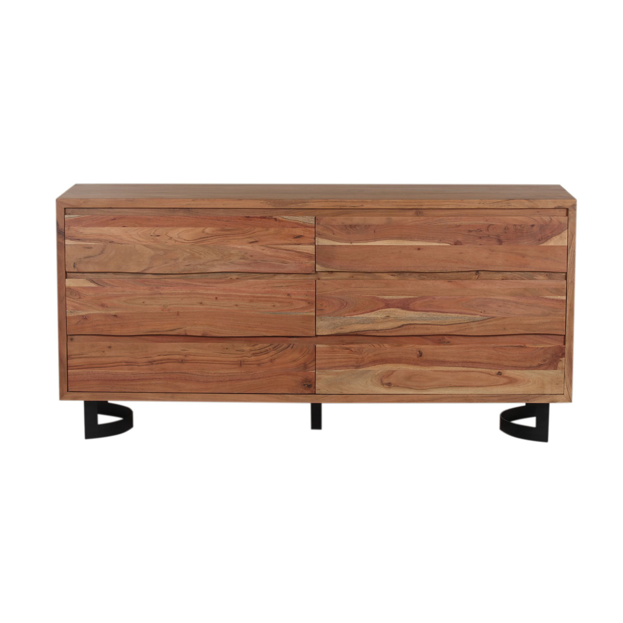 Bent Acacia Wood Metal 6 Drawer Dresser